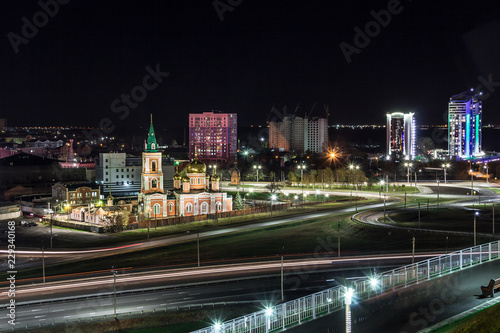 The photo shows a piece of night Barnaul and a very beautiful Temple.