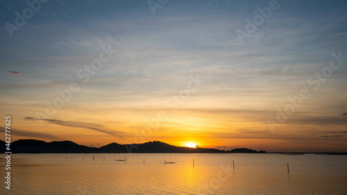 The Picture Nice sunset over sea and mountain.