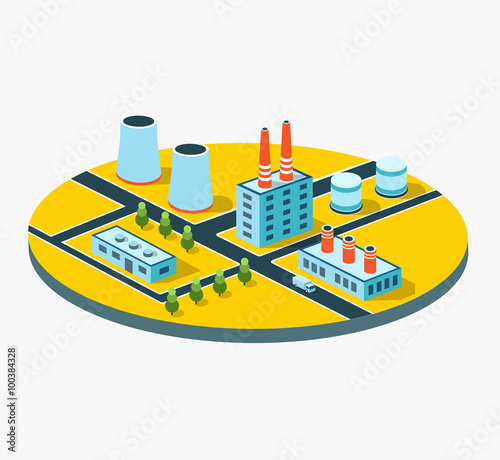 The picture presented factories, houses, skyscrapers.
