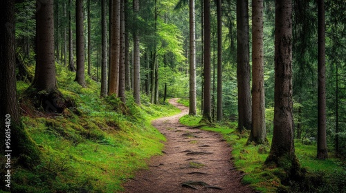 The picturesque landscapes of the Black Forest in Germany, with dense trees and serene paths, completely untouched by human activity