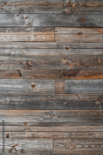 The planks are weathered, showcasing a variety of gray and brown tones, with visible grain patterns and knots. The texture is rough, indicating age and exposure to the elements.