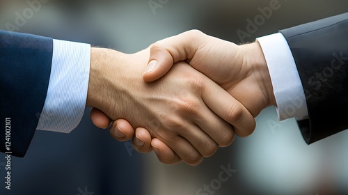 The Power of Partnership: Two hands clasped in a firm handshake, a symbol of trust, collaboration, and the forging of a successful partnership.