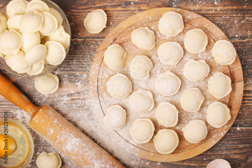 The process of cooking traditional Russian dish - pelmeni