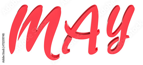 The red word of month 'MAY' isolated on white background. Title of May in spring illustration