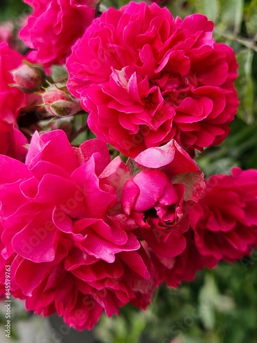 The roses growing in the garden are very beautiful