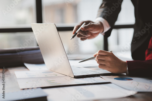 The sales department is having a monthly summary meeting to bring it to the department manager, they are verifying the correctness of the documents that are prepared before bringing in to the manager