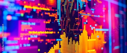 The screen’s vibrant colors and the detailed textures screen displaying abstract digital data.