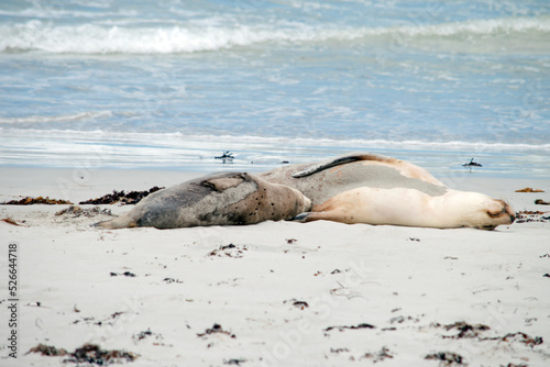 the sea lions are on the beach at Seal Bay