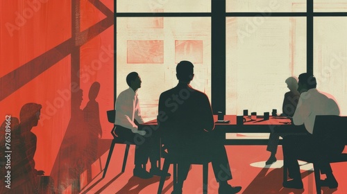 The second image shows a group of people sitting around a table discussing the logistics and details of the policy. . AI generation.