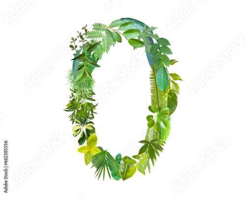 The shape of the number 0 is made of various kinds of leaves isolated on transparent background. suitable for birthday, anniversary and memorial day templates