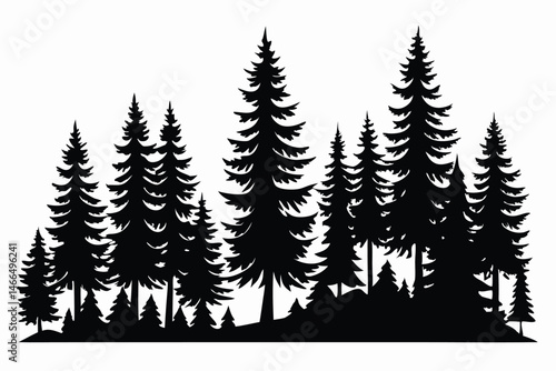 The silhouette of evergreen trees creates a monochrome woodland with a nature theme