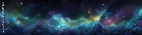 The stars are scattered across the dark space background, adding depth and wonder. Highly detailed, dreamy atmosphere, soft lighting, fantasy digital art