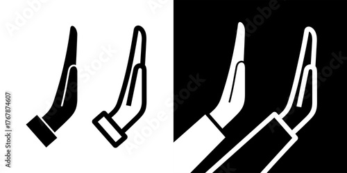 The "stop" gesture icon or greetings, which depicts a hand raised, palm forward. It's used to indicate a halt, prohibition, or refusal. The gesture signifies enough or wait, stop, or enough. Raster.