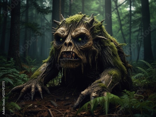 The stump monster in the forest, art, horror.