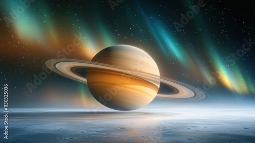 The stunning sight of Saturn's rings glowing with vibrant colors under the illumination of dancing auroras creates a captivating display of natural beauty in the night sky.