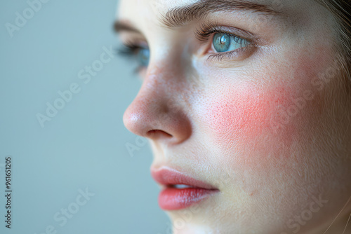 The Subtle Blush: A Close-Up of a Woman's Face Reveals the Beauty of Rosacea