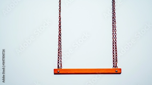 The swing set captured in direct front view with perfect symmetry, chains hanging vertically,