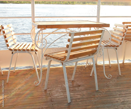 The table and chairs on the boat deck