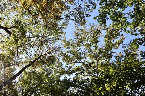 The tall trees in the forest with a sky background.
