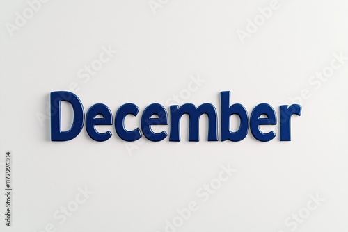 The text "December" is written in dark blue block letters on a white background. Signboard, calendar. Advertising banner