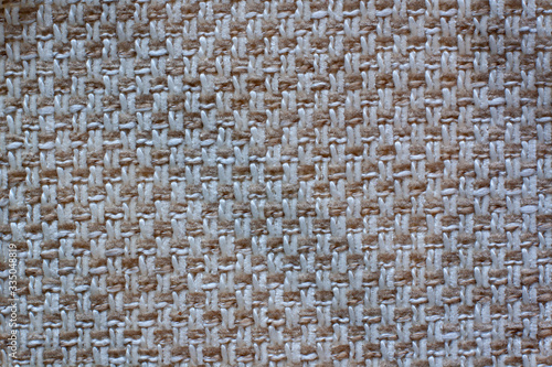 The texture of the fabric. White and brown checkered fabric. Copy space.