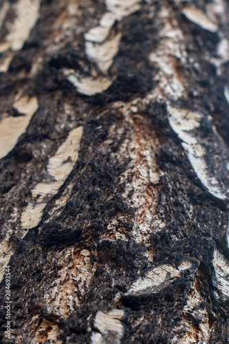 The texture of the old birch bark. Selective focus below. The top is blurry.