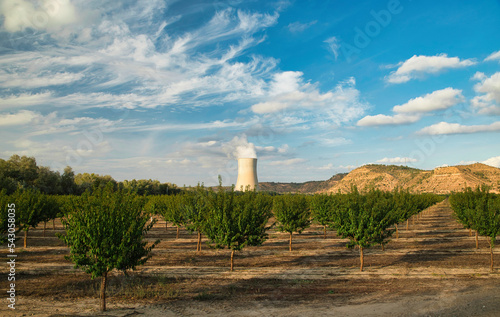 The thermal power plant together with a fruit plantation in Ascó, Tarragona Spain.