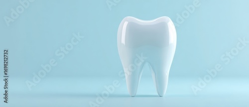 The Tooth Model on Pastel Blue Background Representing Dental Care and Hygiene