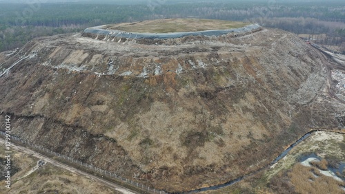 The top of a huge mountain of rubbish, the top of the world's largest household waste dump. Layers, floors of a rubbish dump. The walls of a mountain made up of the products of human activity.