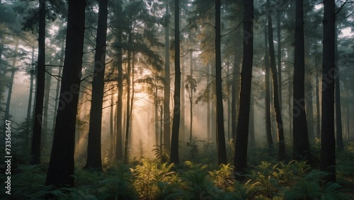 the tranquility of a forest at dawn Generative AI