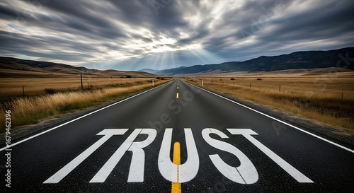 The Trust Journey A Metaphor for Life's Path and Future Endeavors, Symbolized by an Endless Road Leading Towards Hope and Success Under a Dramatic Sky