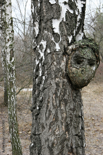 The unusual growth on the trunk of a birch tree looks like a hum