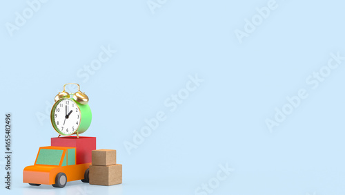 The Van truck and clock for shipping or delivery concept 3d rendering.