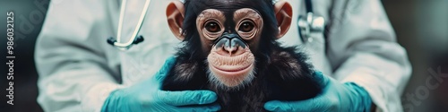 the veterinarian holds a monkey in his hands. Selective focus