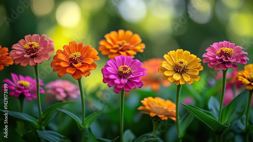 The vibrant colors of a field of zinnias in full bloom on a sunny day