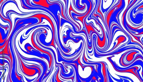 The vibrant red, white, and blue paints seamlessly blend together on the blue canvas