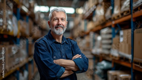 The warehouse manager standing confidently