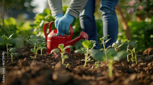 The watering of young plants