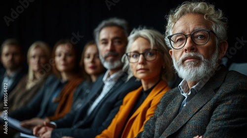 The Weight of Experience: A diverse board of directors, their faces etched with experience, sit poised for a critical meeting, their collective wisdom radiating power and authority.
