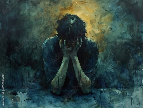 The Weight of Sorrow: A Watercolor Depiction of Emotional Turmoil