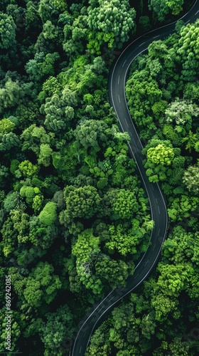 The winding roads in the forest, bird's-eye view