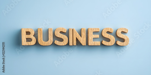 The word BUSINESS spelled out in light brown wooden letters against a light blue background. A simple, clean image ideal for business concepts.