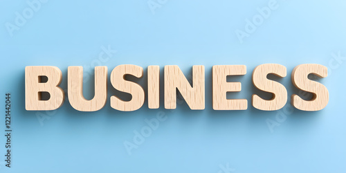 The word BUSINESS spelled out in light wooden letters against a pale blue background. Simple, clean, and professional.