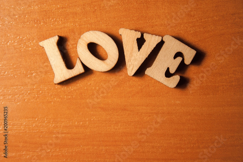The word love written with wooden letters background