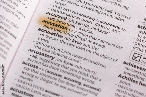 The word or phrase Accusation in a dictionary.