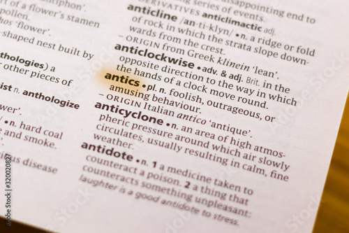 The word or phrase Antics in a dictionary.