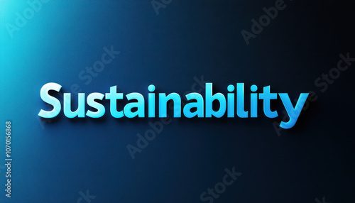 The word 'Sustainability' in bold blue lettering on a gradient background, highlighting environmental awareness and eco-friendly practices.