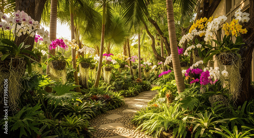 the yard of the house with beautiful green plants and the sun shining beautifully