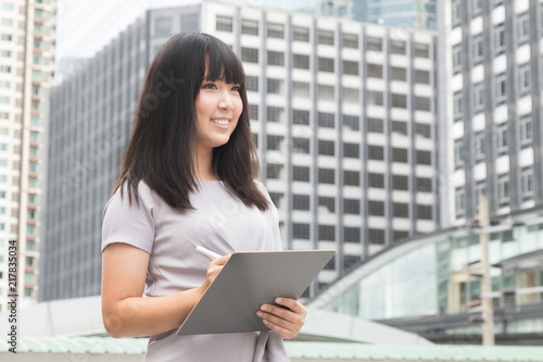 The young Asian beauty woman Casual wear dress working day outdoor light for background.