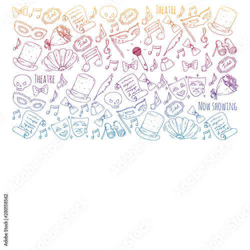 Theatre vector illustration. Entertaiment, cinema, stage, event. Background for banners, posters.
